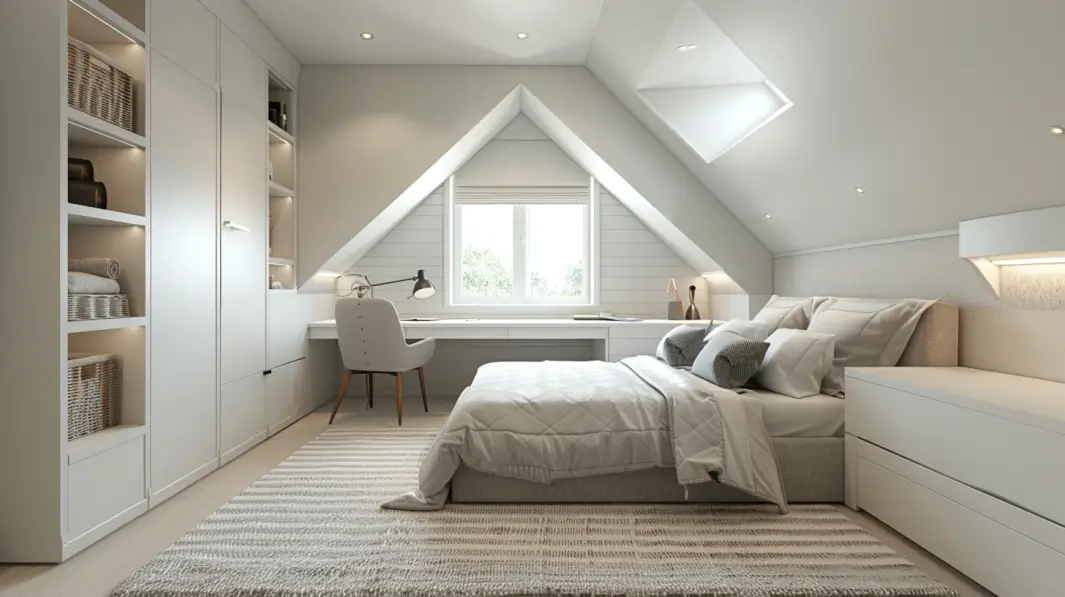 - Built-In Storage: Use the unique angles of your attic to install built-in shelves and cabinets. This keeps the room tidy and saves floor space.