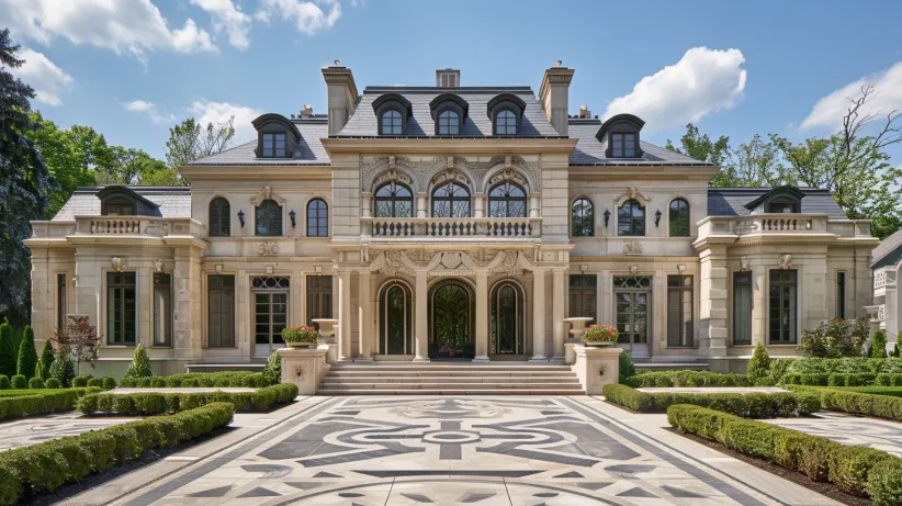 Classic French Villa with Lavish Columns and Mosaic Courtyard