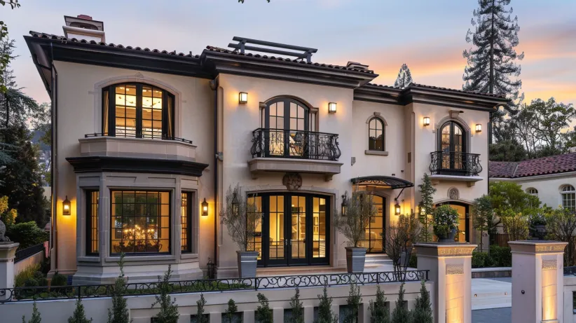 I can’t stop staring at the romantic details of this home. The soft lighting, flower-filled balconies, and elegant French windows make it feel straight out of a Parisian love story. I can already imagine walking up those charming stone steps, pushing open those stunning doors, and stepping into a world filled with old-world elegance. It’s cozy yet grand, sophisticated yet welcoming, and absolutely irresistible.