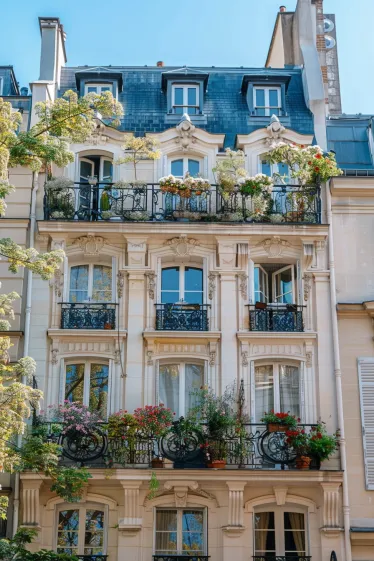 Flower-Filled Balconies in French City House Exterior Designs
